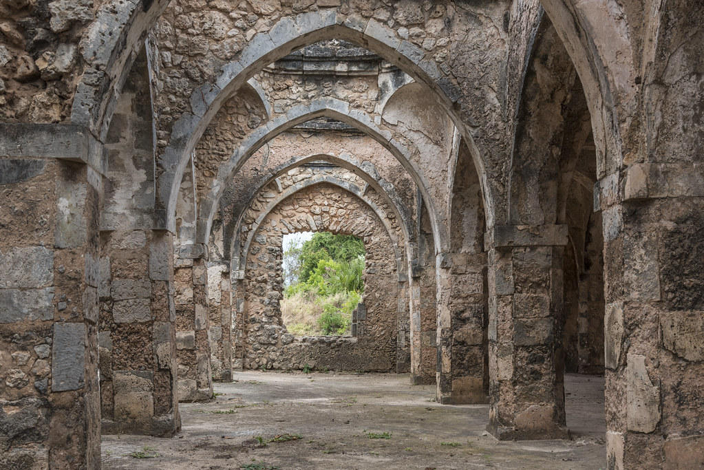 Constructed in the 11th century and restored in the 14th century the mosque is a structure that captures Swahili Islamic architecture at its best. The mosque has a large prayer hall with a dome and a variety of rounded massive stone columns, which gives an inspiring, at the same time, massive-looking interior. Coral stone and carved doorways and windows are also incorporated and adorned by the expertise and artistic ability of Swahili construction workers.